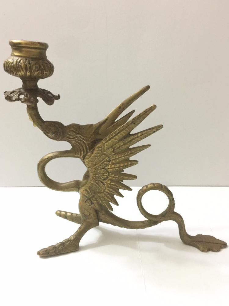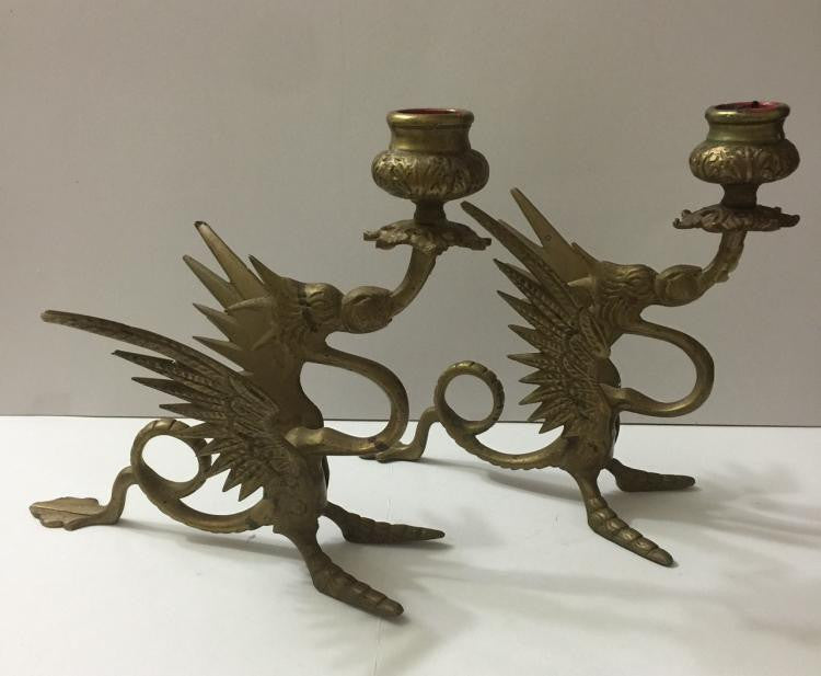 Griffin Candlestick Holders a Set, Brass Mid-Century, Gothic Monsters.