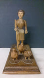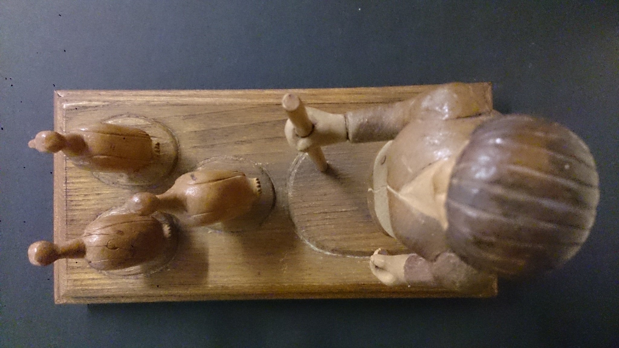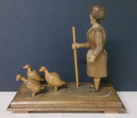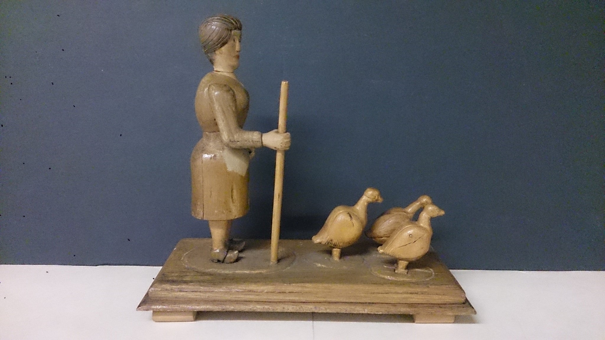 Antique folk art is distinguished from traditional art in that, while collected today based mostly on its artistic merit, it was never intended to be 'art for art’s sake' at the time of its creation. Examples include weathervanes, old store signs and carved figures, itinerant portraits, carousel horses, fire buckets, painted game boards, cast iron doorstops and many other similar lines of highly collectible "whimsical" antiques.