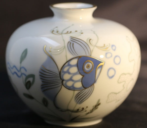 Vase en porcelaine Heimer Grimm peint à la main, poissons nageant parmi les algues.