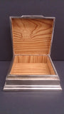 Coffret à bijoux, cuivre blanc, incrustations de bois, motif ancre et floral.