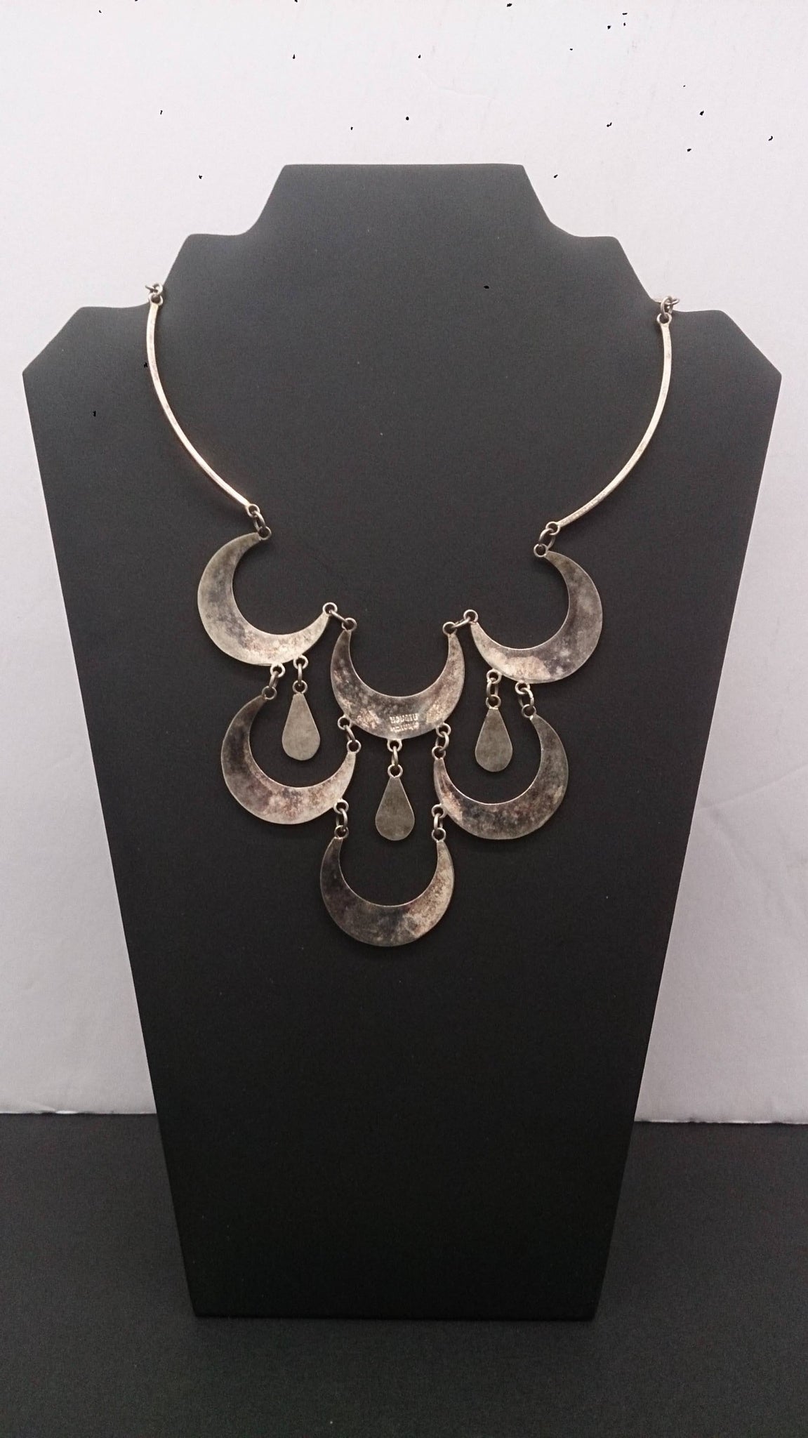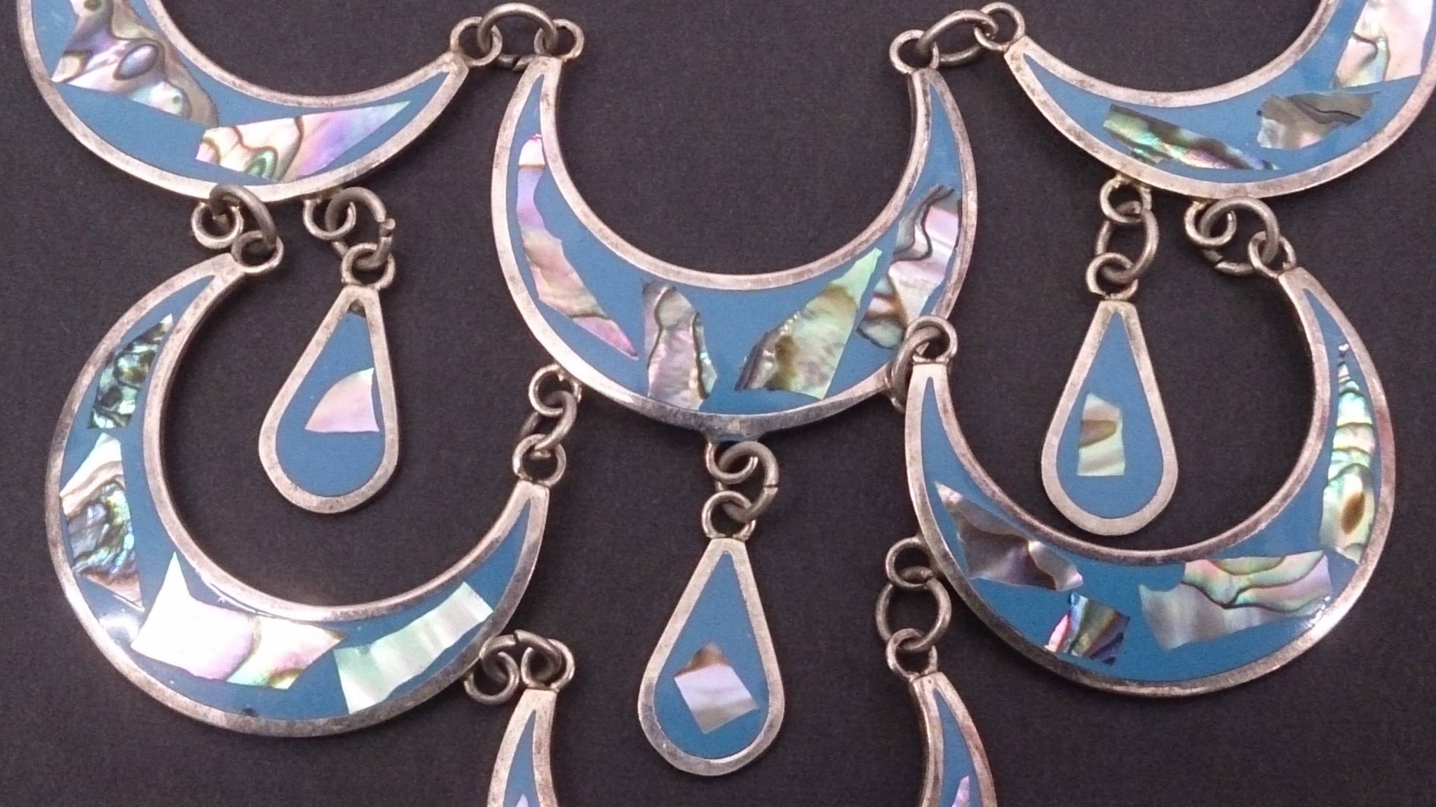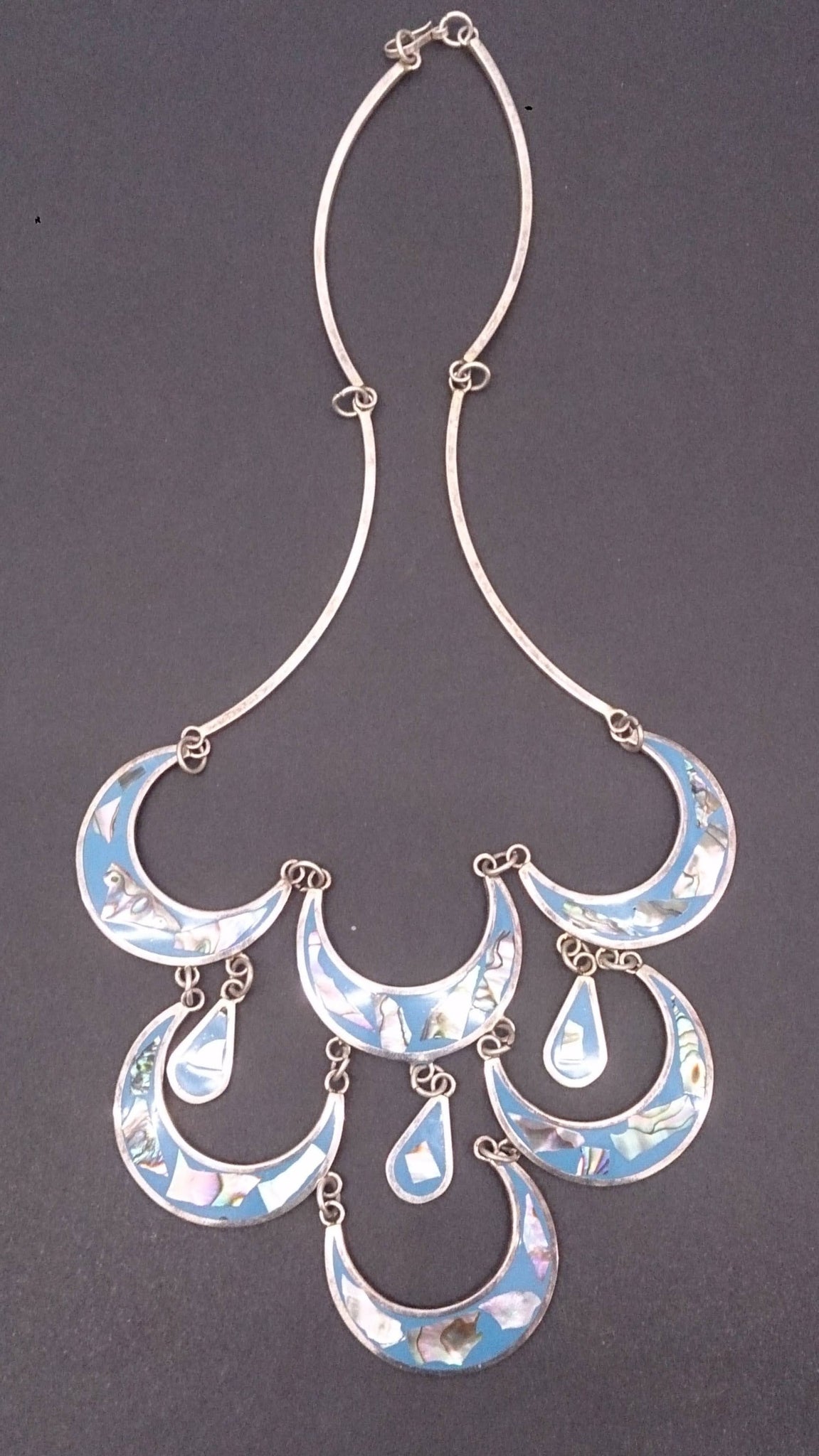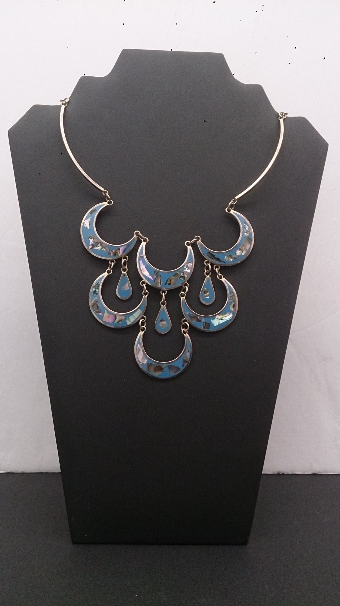 Collier, argent, magnifiquement incrusté de « nacre », inscription en dessous : Alpaga.