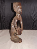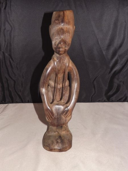 African Baule Sculptor, Hand Carved Figure, Human and Monkey Traits, Holding a Groin Cover.