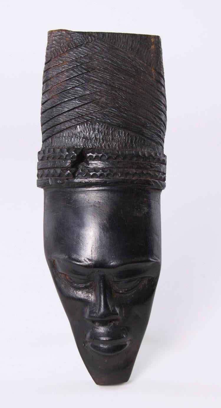African Ghana Wall Mask, Woman with Braided Hair, Hand Carved Ebony.