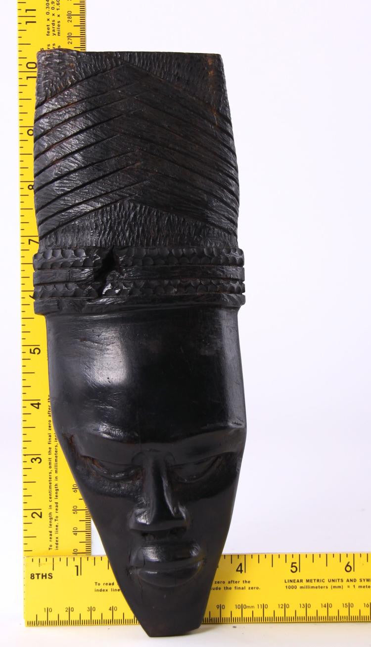 African Ghana Decorative Wall Mask, Woman with Braided Hair, Hand Carved Ebony.