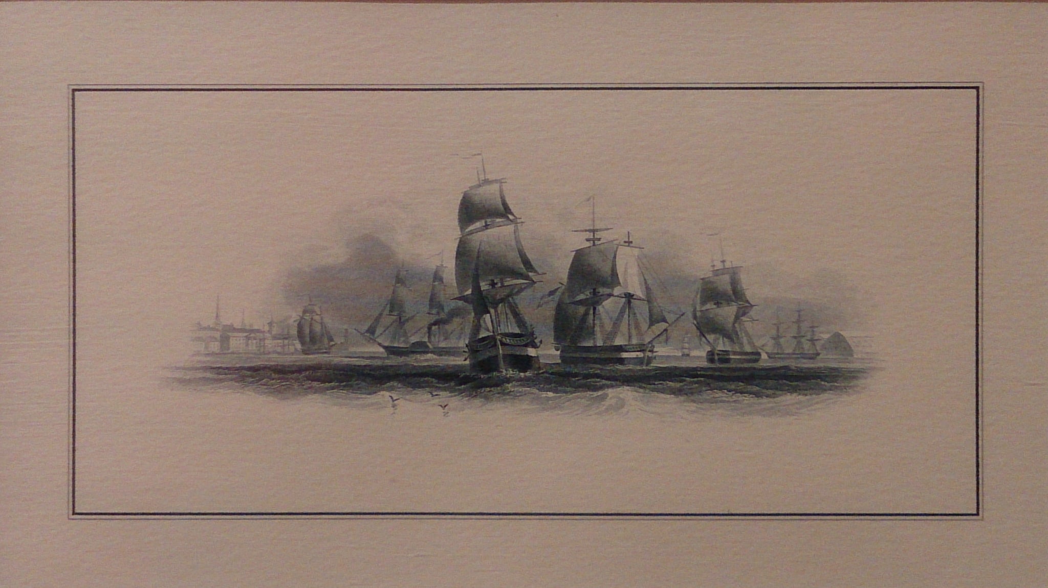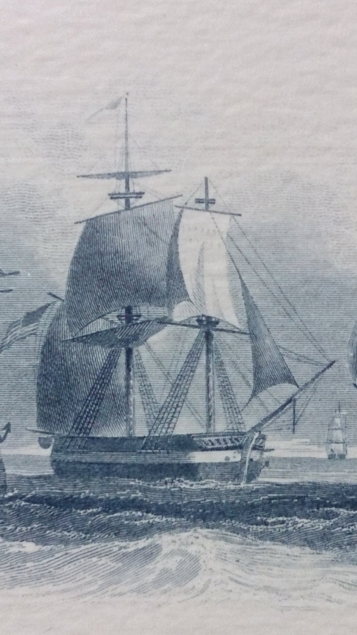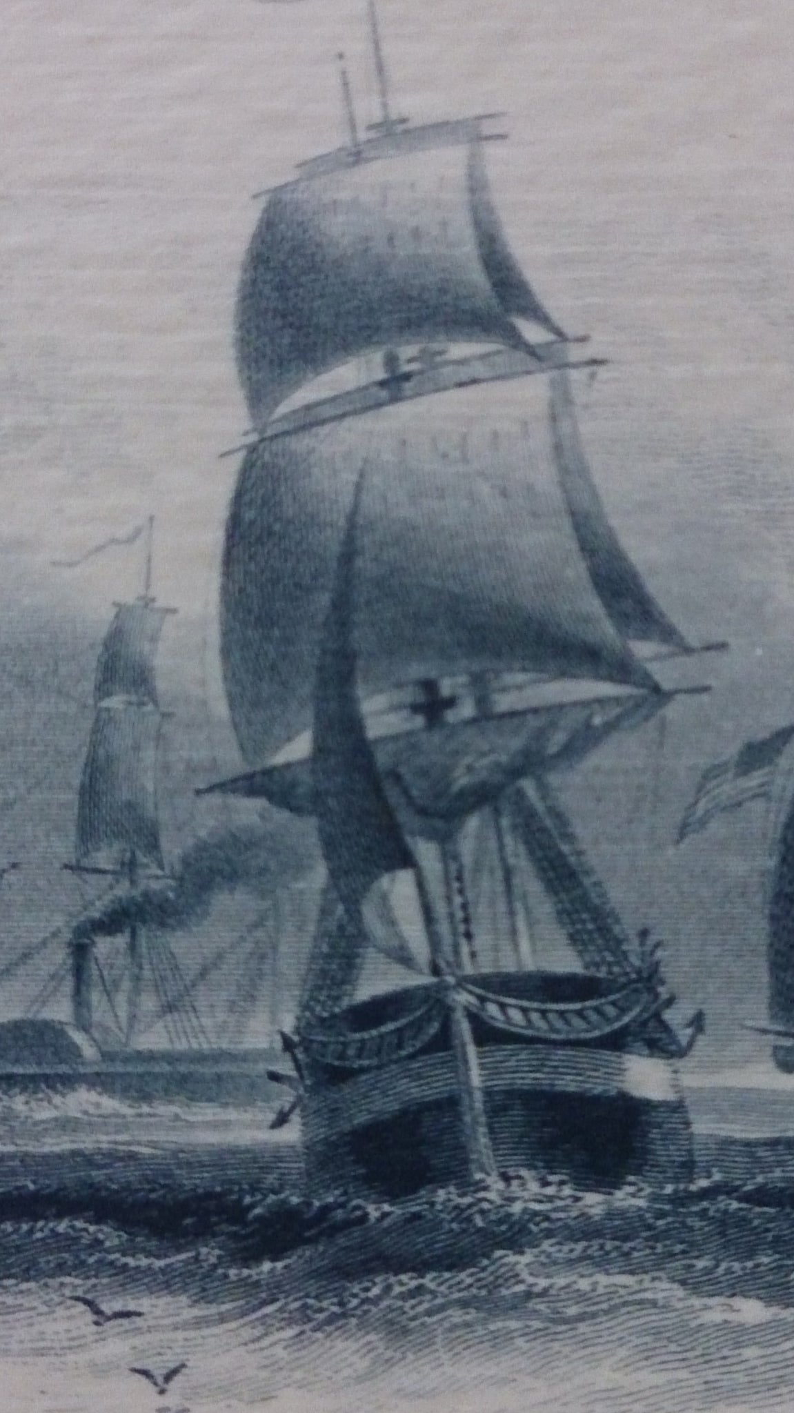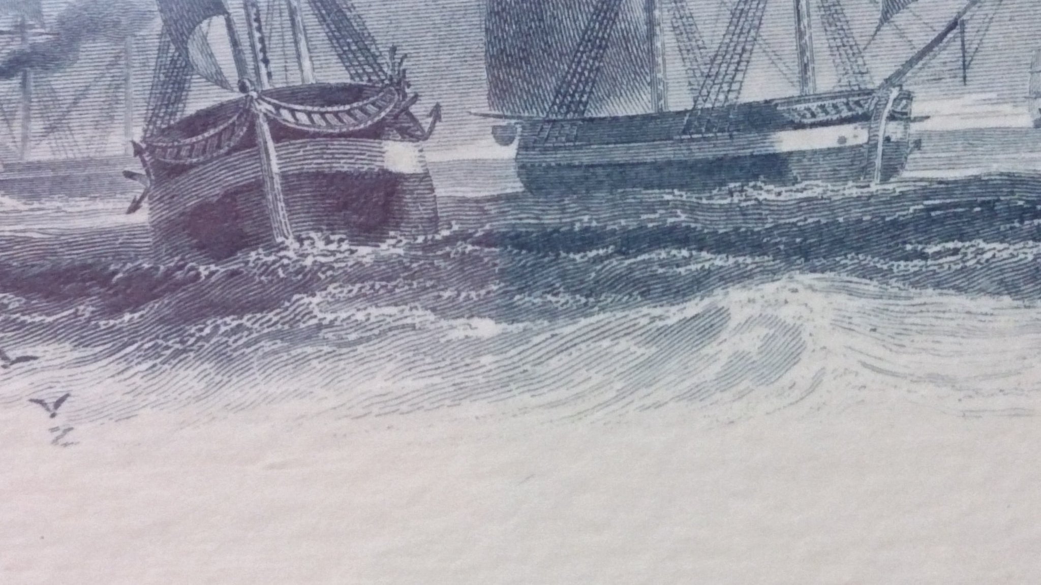 Engraved Maritime Print Five Schooners with Steam Power Framed Collectible.