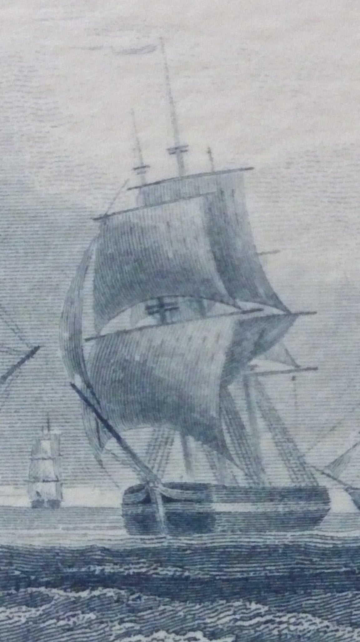 Engraved Maritime Print Five Schooners with Steam Power Framed Collectible