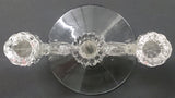 Heisey Triple Candelabra Candlestick Holder. Very elegant 1940's designer glassware created in the United States. Lovely EAPG Crystolite (Early American Pattern Glass) in very good condition. The centre candle sits lower than the two that frame it, for a nice staggered lighting effect.