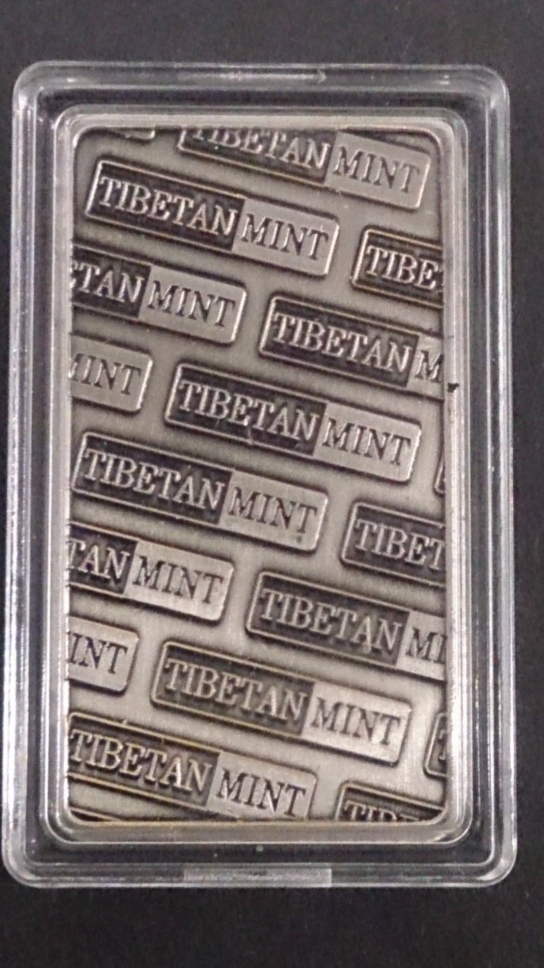 Silver Bar, 1 Troy Ounce, .999, Tibetan Mint.