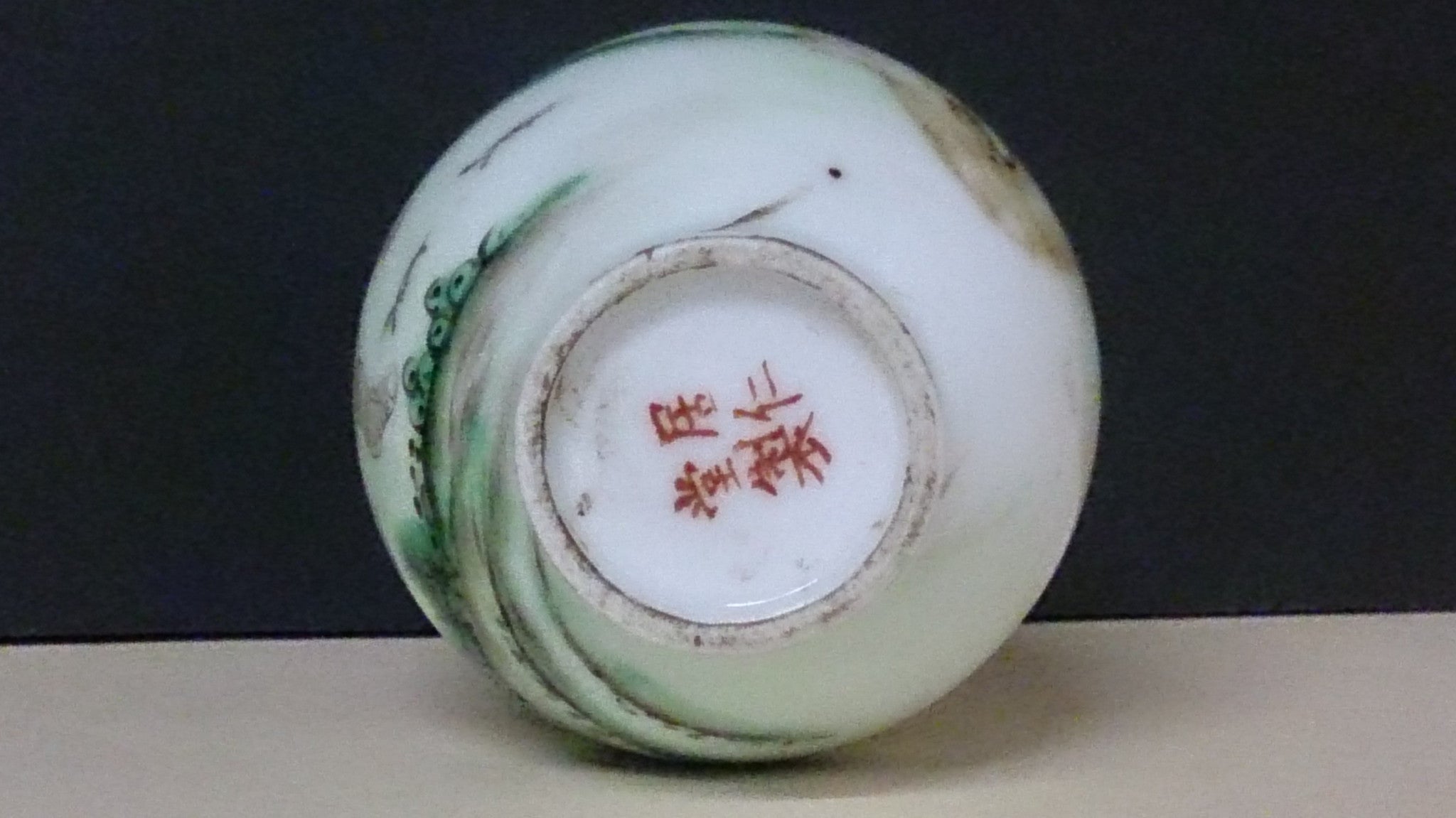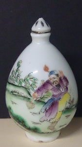 Snuff Bottle Porcelain Hand Painted Landscape Asian Man Dancing Chinese