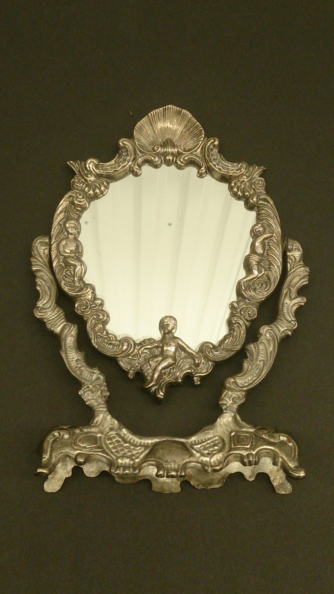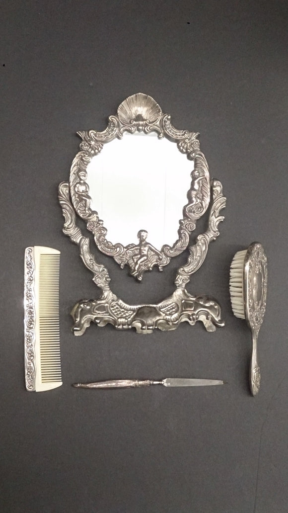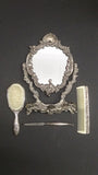 Victorian Dresser Vanity Mirror Set, Silver Plated.